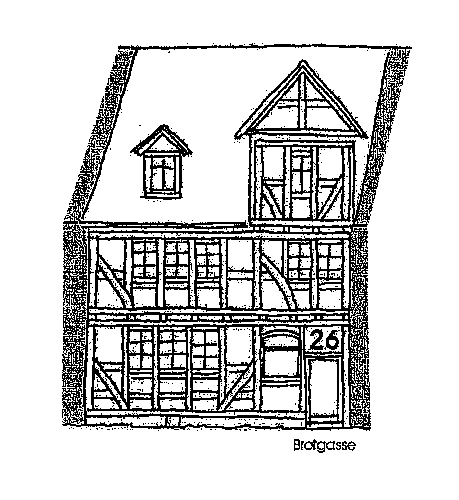 Folgen Sie dieser Straße, bis Sie gegenüber einer Bank links in die Brotgasse fahren.